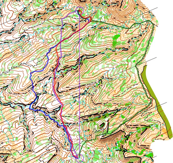 Looking at the pace you can clearly see how you can run quite fast for most of the leg on the variant to the right, but you of course need to take the steep climb first.