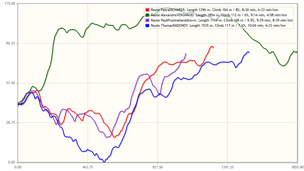 Here is also a coarse overview of the elevation profile of the four different alternatives: